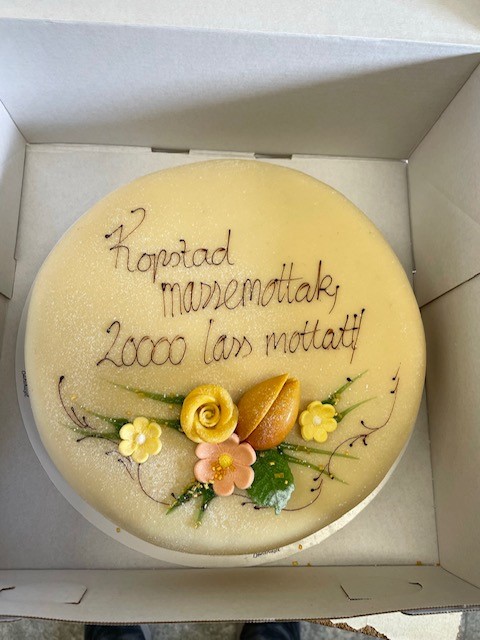 On Friday 22nd of April 2022, Norsk Gjenvinning marked with a large cake for the employees that 20.000 loads of stone and inert materials have now been filled at Kopstad. Progress is now greater than before. The first plots ready for construction will be completed in 2023/2024.